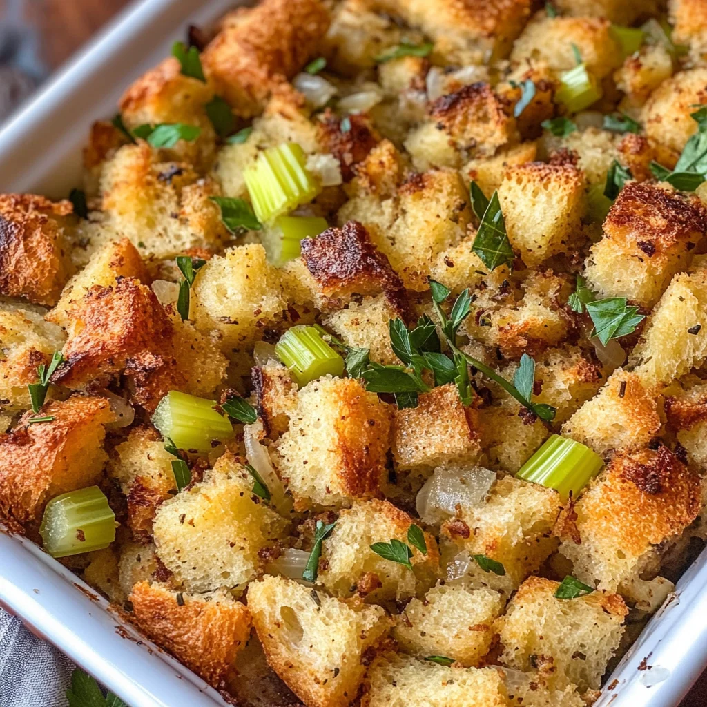 This stuffing recipe is special because it strikes that ideal balance between chewy and moist, sweet and savory. Whether you’re preparing for a big family gathering or just want to enjoy a cozy dinner at home, this stuffing will bring everyone together around the table.